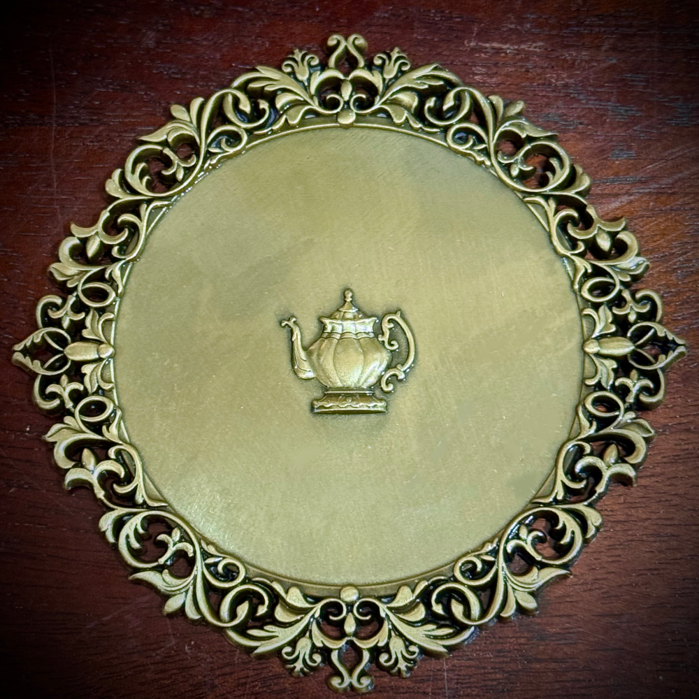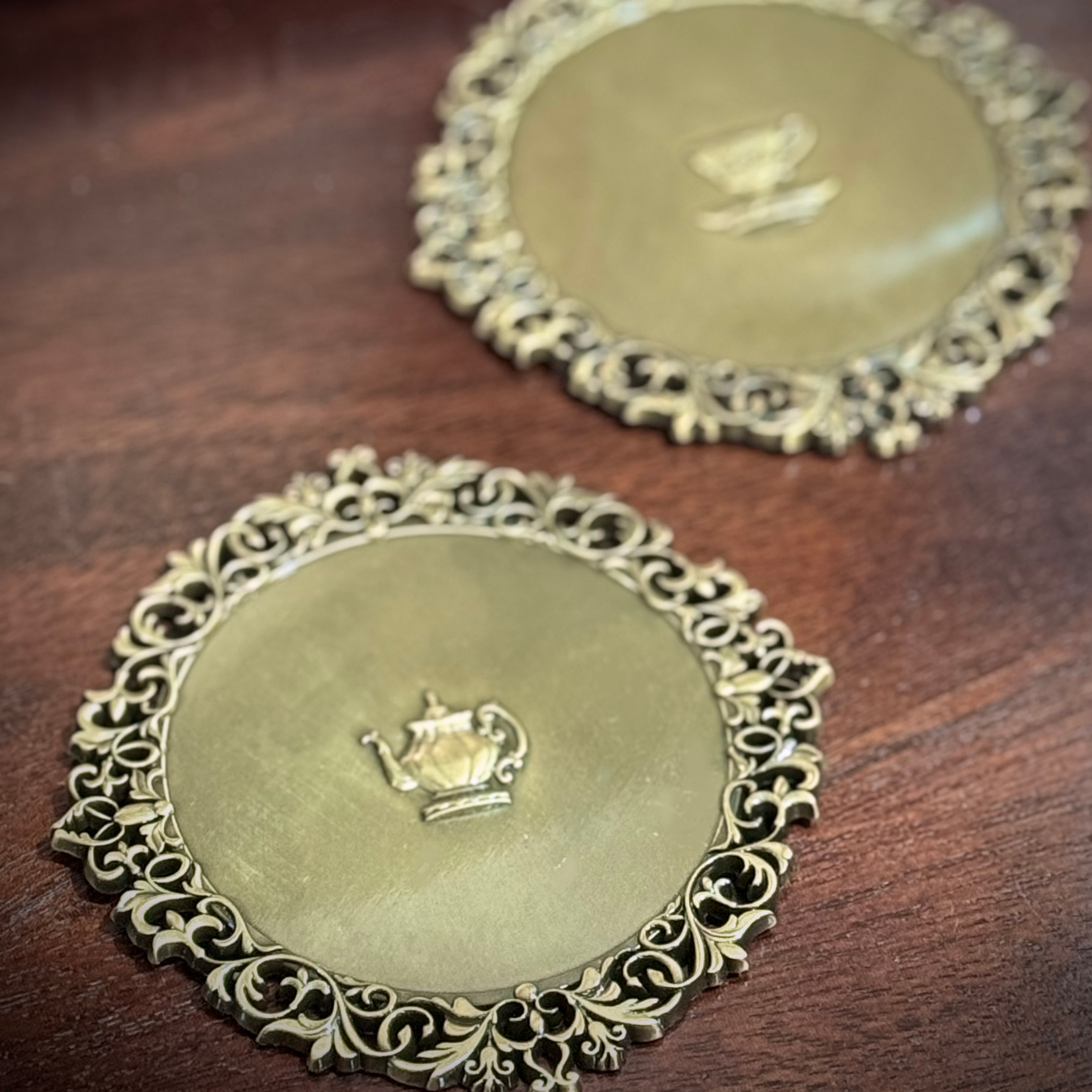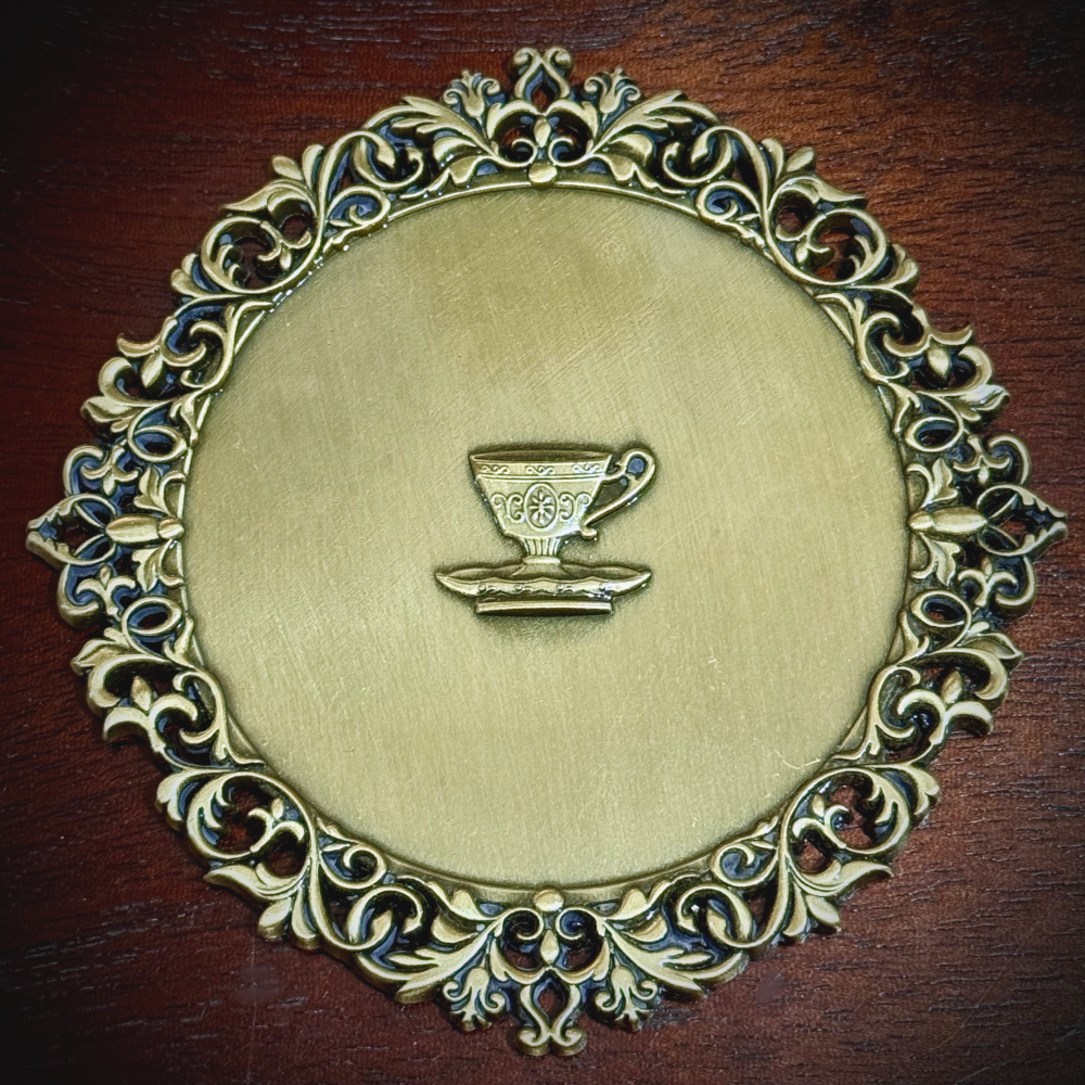 底面にくぼみのあるティーカップやグラスにお使いいただけるメタル製コースター。